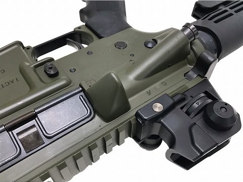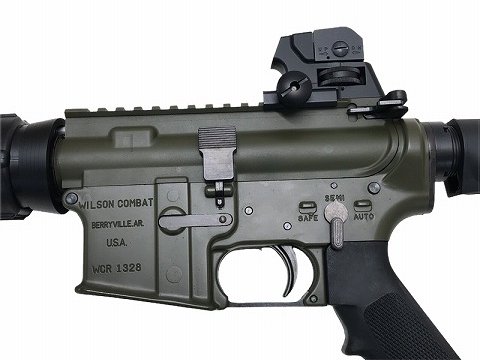 [WA] ウィルソンコンバット M-4T タクティカルカービン マグナガスブローバック (中古) 製品詳細画像3 ウイルソンより取り寄せたサンプルを忠実に再現した「ODカラー」のレシーバー。「オーバーサイズ・ボルトリリース」が装備されている。