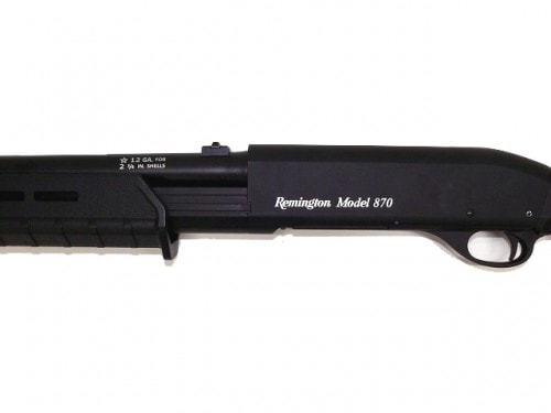 同社M31の後継として開発された、レミントン社の代表的なポンプアクション式散弾銃。操作性の高さと頑丈さが評価されて、狩猟はもとより警察機構の制式散弾銃としてよく使用されている。公用モデルのM870Pは、短銃身で装弾チューブを延長した実戦型(総弾数6発)。 ある意味においては、アメリカンポリスのシンボル的な存在であり、今も車輌搭載用の非常用火器としていまも現役で使用されている。 本銃は、元本のM870エキスプレスショットガンから多数のモデルが開発されており(M870P、M870ウイングマスターという具合に)、わが国日本でも、狩猟用として販売されている。 JCG(海上保安庁)の特別警備隊(SSTとは全く別物)に採用されているモデルは、錆びにくいクロームステンレス製のマリーンマグナムと呼ばれるもので、PSIのような海上での臨検を含んだ警備訓練で隊員が携行することがよくある。