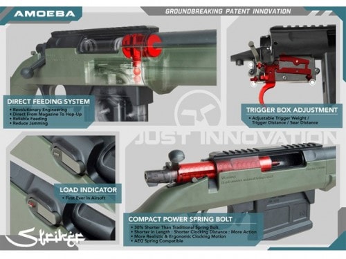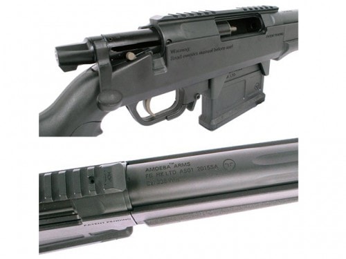 独特の近未来的な外観と扱いやすさを両立していたAMOEBA(アメーバ)シリーズのラインナップに、エアコッキングのスナイパーライフルが登場です。 今回もメーカーのカスタムブランドらしく独自のアイデアに基づく設計がされています。