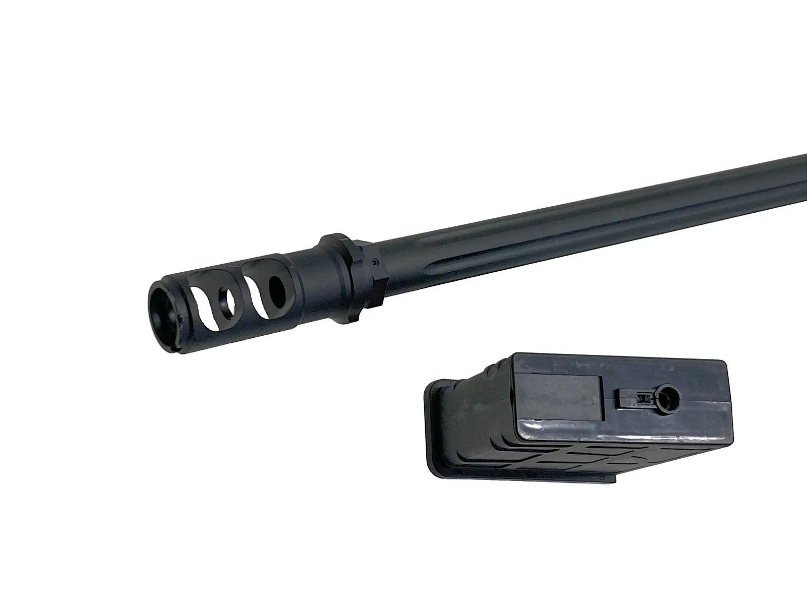対物ライフルの名門バレット社が放つボルトアクション狙撃銃を、スノーウルフが独創的な電動ガンとして再現。実銃のボルトアクションの外観を保ちつつ、ゲーム性を重視したフルオート機能を搭載している点が最大の特徴だ。金属製アッパーフレームとフルーテッドバレルの剛性感は圧巻で、ダミーボルトの可動ギミックも心憎い。長大な射程を予感させるフォルムと、電動ガンならではの制圧力を両立した野心作と評価したい。