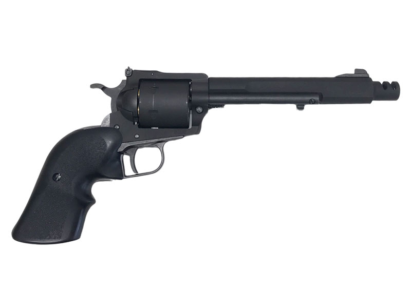 オリジナルデザインのマズルブレーキとパートリッジフロントサイトが付いたカスタムバレルを採用。専用にデザインされた大型カスタムグリップも装備して、スーパーブラックホークベースの初カスタムモデル。