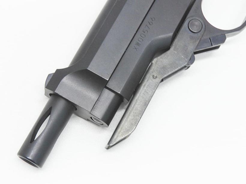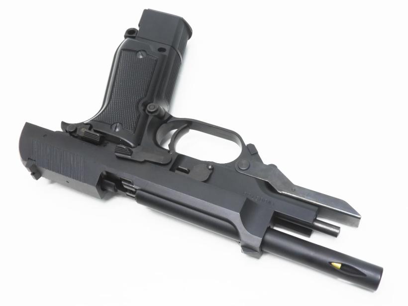 ハンドガンの場合は全体を金属性とする組み換え、エアソフトガンの場合は射出エネルギー0.98J以上にする改造を行うと銃刀法違反となります。HFC134a仕様のガスガンにCO2用マガジンを組み込む、スライドを金属製の物に差し替える等、簡易な改造でも罪に問われる可能性がございますので、絶対にお止めください。
