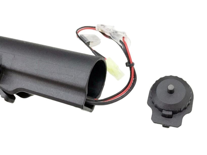 バッテリーはストック内収納。スペースは約30 X 100 X 20mmです。
