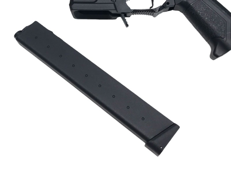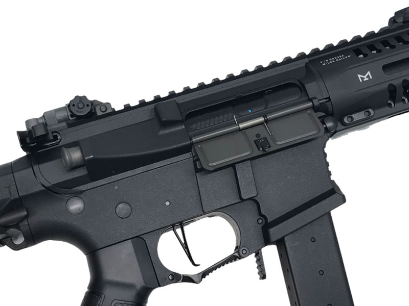 G&Gオリジナルモデルですが、口径9mmのARという設定でコンパクトさに説得力を持たせており、マガジンがグロックと同様の形状になっている点も「いかにも」な印象。