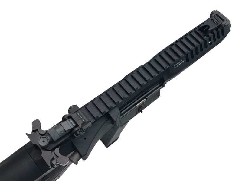 樹脂レシーバーとアルミM-LOKハンドガードの組み合わせでかなりの軽量を実現しているものの、軋みもなく高い剛性を兼ね備えています。