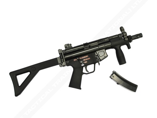 実銃のMP5はドイツ、ヘッケラー&コッホ社の製造する9mm×19拳銃弾を使用するサブマシンガンだ。G3アサルトライフルのローラーロッキングメカニズムを利用したクローズドボルト方式により高い命中精度を誇り、世界各国の特殊部隊や警察、いわゆるローエンフォースメントで使用されている。