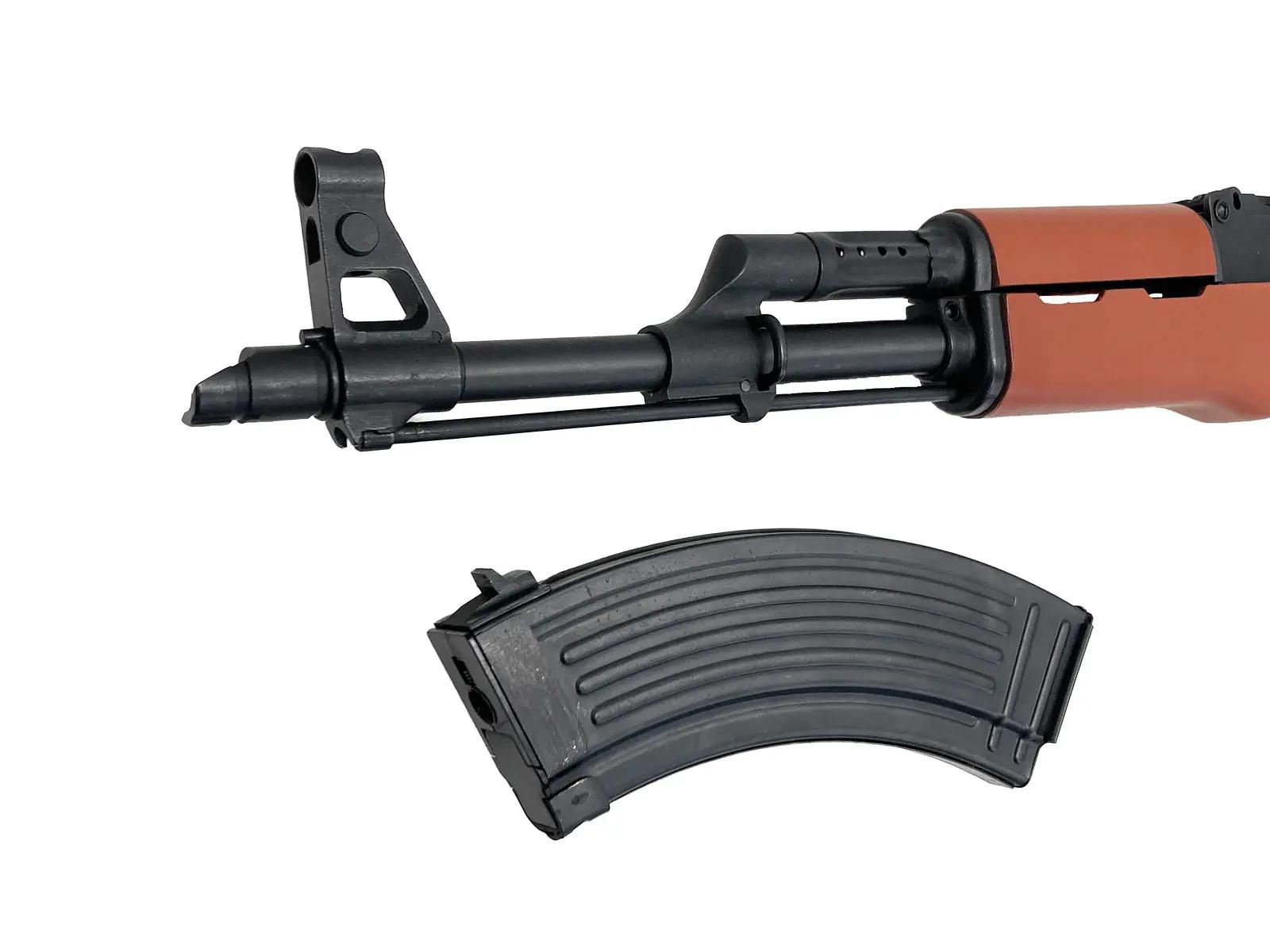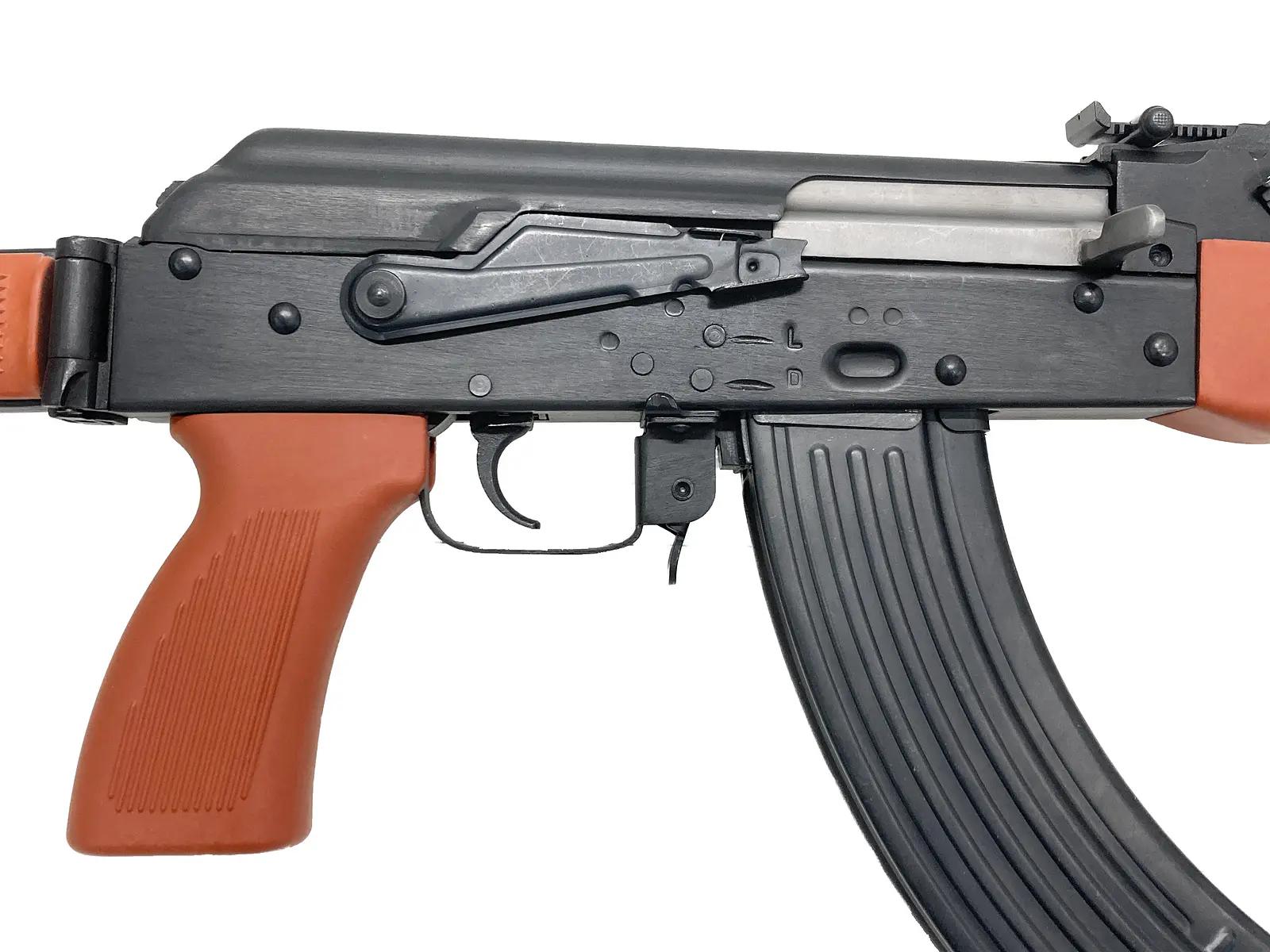 本家AK47の外観との違いで一番注目すべき点は折り畳み式のスパイクバヨネットを装備している点である。フロントサイトベースもリング状ガードに変更し、トップに穴を開け、壊れにくく、夜間でガード部をサイトに誤ることを防ぐことができた。