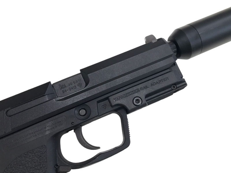 ハンドガンケースが付属しているので保存時も便利につかえる。サイレンサーを装着して撃つと無しの状態と比べてボフッという音になり消音効果は高くなる。レイルアダプターも付いているのでオプションライトなどをつけることが出来る。