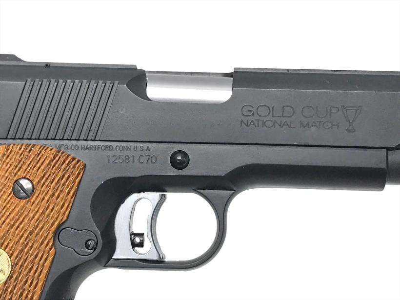 ゴールドカップナショナルマッチは通常のM1911を競技用拳銃としてリファインされたモデルである。反射防止を目的とし、リブには縦・前後方向にセレーションが刻まれている。ナチュラルHW。