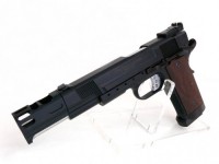 ストレートセレイションスライド、M945純正アジャスタブルリアサイト仕様のブラックモデル。アルミ切削コンペンセイター、テフロンコーティングインナーバレルなど、基本仕様は言うまでもなく当然スーパーフルハウス。