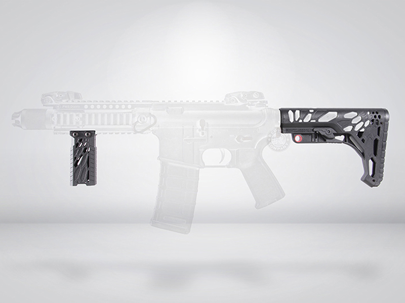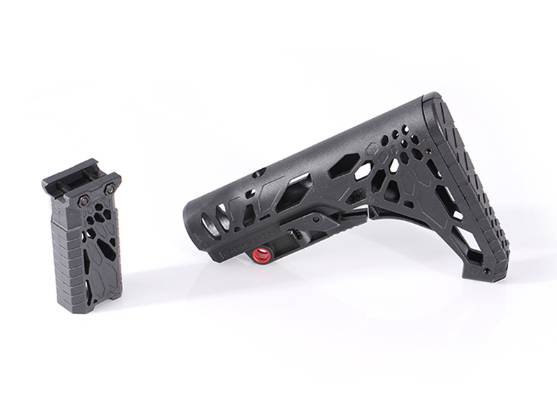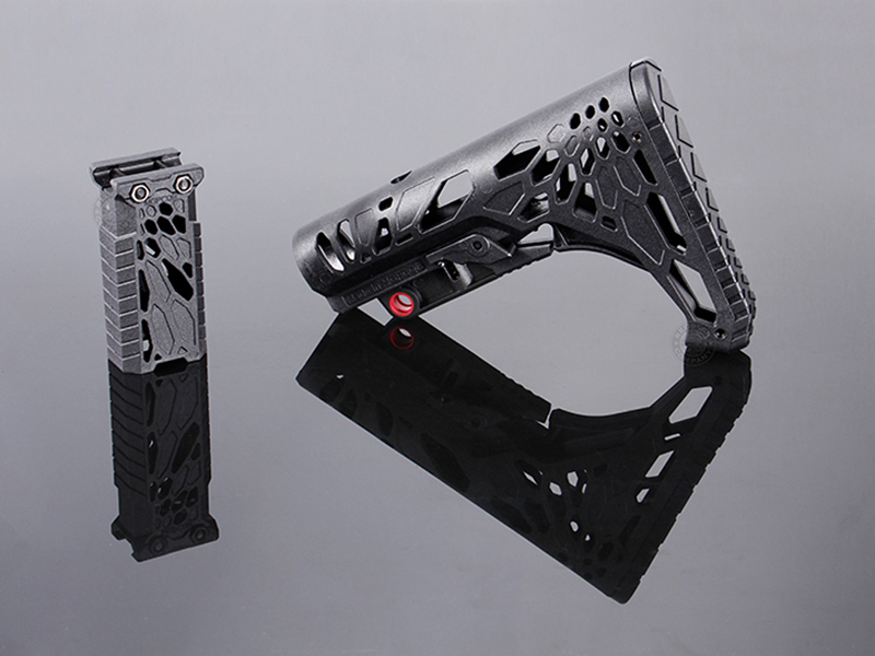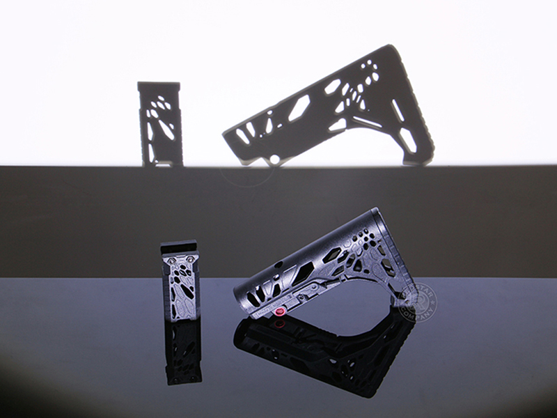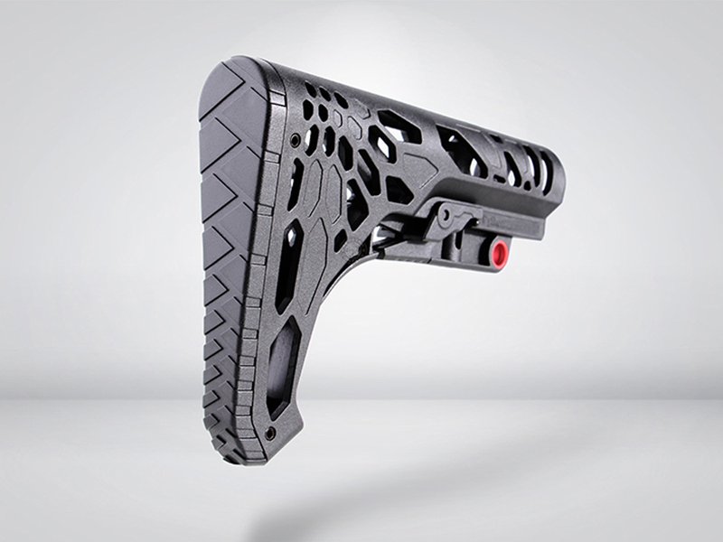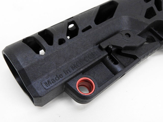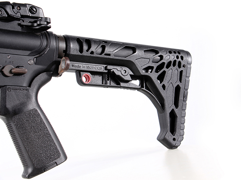 軽量化のための肉抜きが特徴的なデザインのM4ストック。