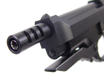 ハンドガンの場合は全体を金属性とする組み換え、エアソフトガンの場合は射出エネルギー0.98J以上にする改造を行うと銃刀法違反となります。HFC134a仕様のガスガンにCO2用マガジンを組み込む、スライドを金属製の物に差し替える等、簡易な改造でも罪に問われる可能性がございますので、絶対にお止めください。