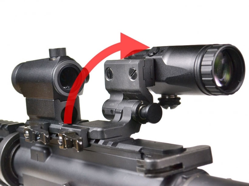 フリップトゥサイドマウントを使うことにより、使用しないときはワンタッチで横によけた状態で固定できる3倍ブースター。
