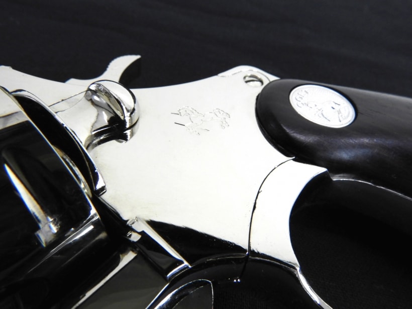 光沢の眩いニッケルモデルに、メダル入り木製グリップを装備したカスタム品!!