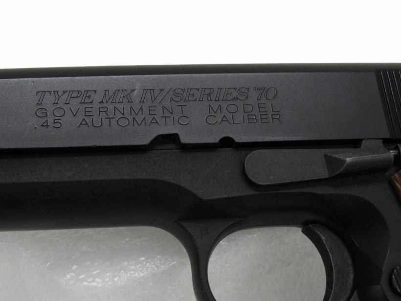 マルゼン製のマークIVシリーズ70ガバメント。ガスブローバックモデル。コルト社の発売している民間用ガバメントで、1970年代に生産されていたものをモデルアップ!