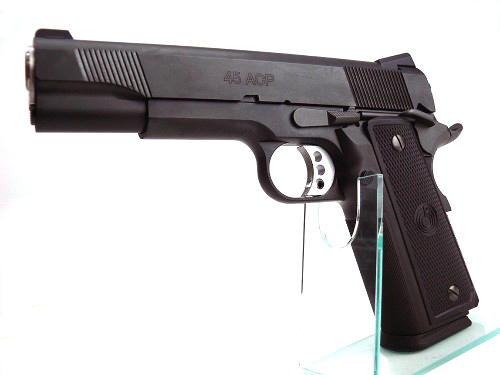 FBIの特殊ユニットH.R.T.に制式採用される、ハイキャップ.45、その名もH.R.T.スペシャル!カーボンブラック塗装で無垢の鉄のような風合いを再現している。