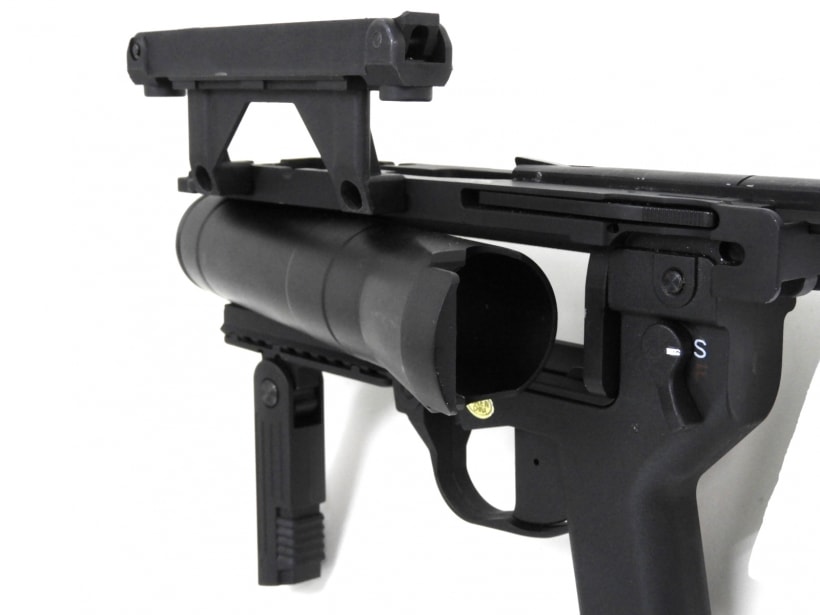 射出部にアルミを用いた迫力のガスグレネードランチャー。