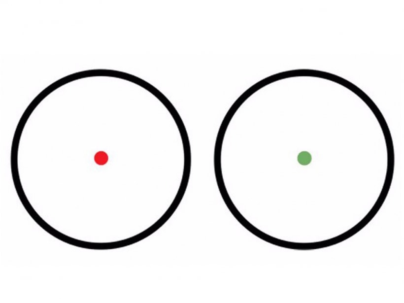 2倍と使いやすい倍率、シチュエーションにあわせて使い分けやすいレッド・グリーンの2色/各5段階 切替のドットレティクル。