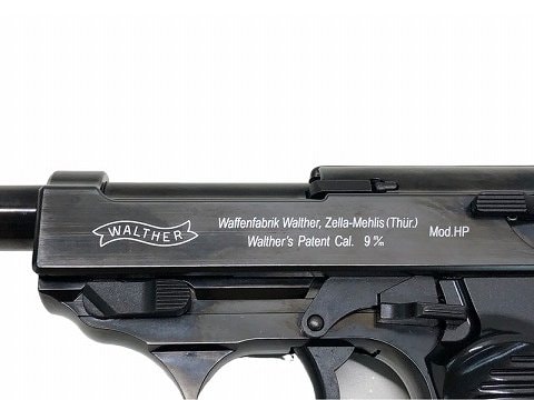 [マルゼン] ワルサーP38 ヘーレス・ピストーレ 125周年記念モデル ガスブローバック (中古) 製品参考画像 Mod.HP[ヘーレス・ピストーレ]のロゴがレーザー刻印されています。