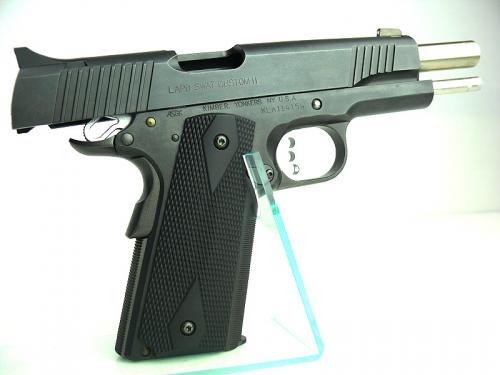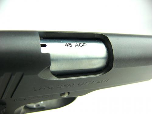 ロサンゼルスSWAT正式採用拳銃LAPD SWAT CUSTOM IIのカーボンブラックHW仕様。 5mm軸タイプの片側セフティやリアルサイズトリガー、ラバーコーティング・ダイキャストグリップの他、シリーズ70にて採用され好評を博している、スライド側面のポリッシュ仕上げが施され、加えてメタルチャンバーを採用。