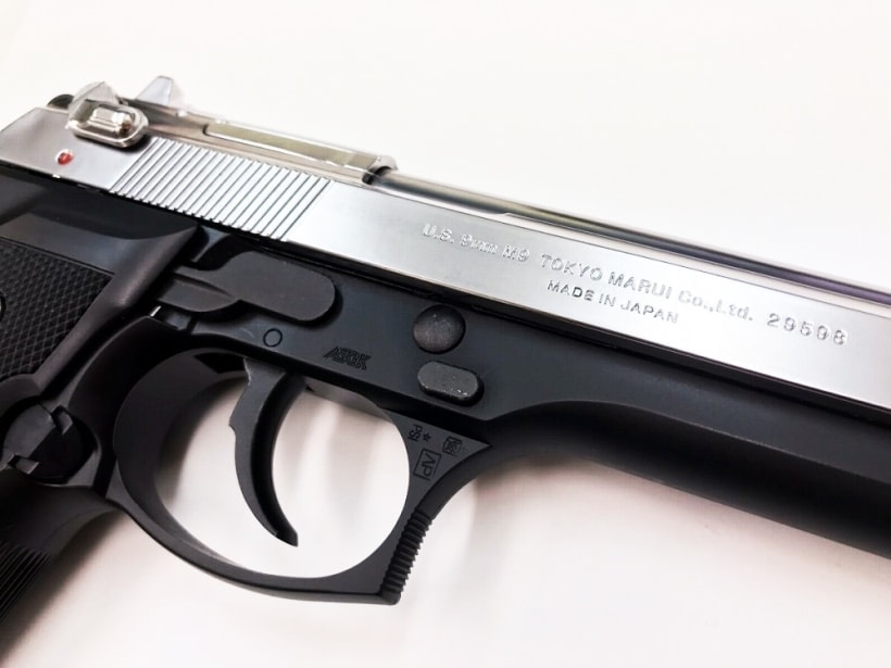 スライドがステンレスクロームメッキで質感が向上している またトリガー、ハンマー、セーフティ、スライドストップレバー、テイクダウンレバーは金属製でできていることと、ガツンと衝撃の来る快調なブローバックがこの価格で完成度の高い商品を作るマルイの技術力を裏づけている。