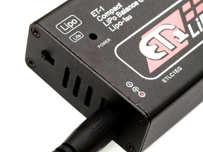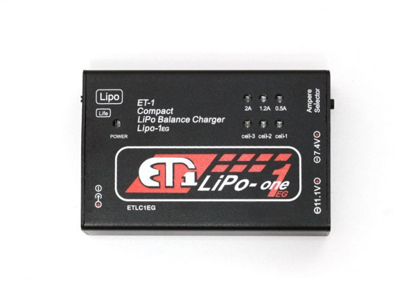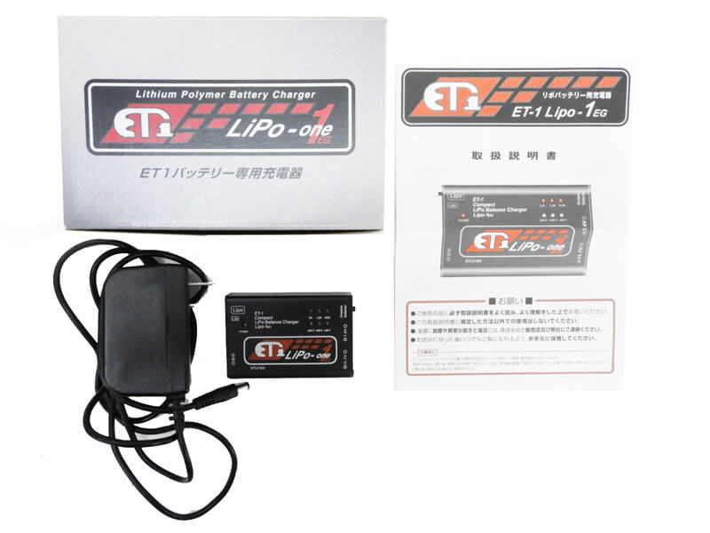 LIPO1EGはリフェバッテリーの充電も可能ですが、弊社ET1製品はリポバッテリーだけですので、必ず充電前に左サイドの「リポ/リフェ切り替えスイッチ」がLipo側になっていることをご確認ください。ACアダプターは付属の物をご使用ください。