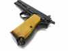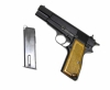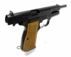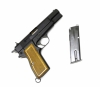 JACのブローニングハイパワー ミリタリー1001。ガスブローバック。6mmBB弾使用。チェッカータイプの木製グリップを装備。