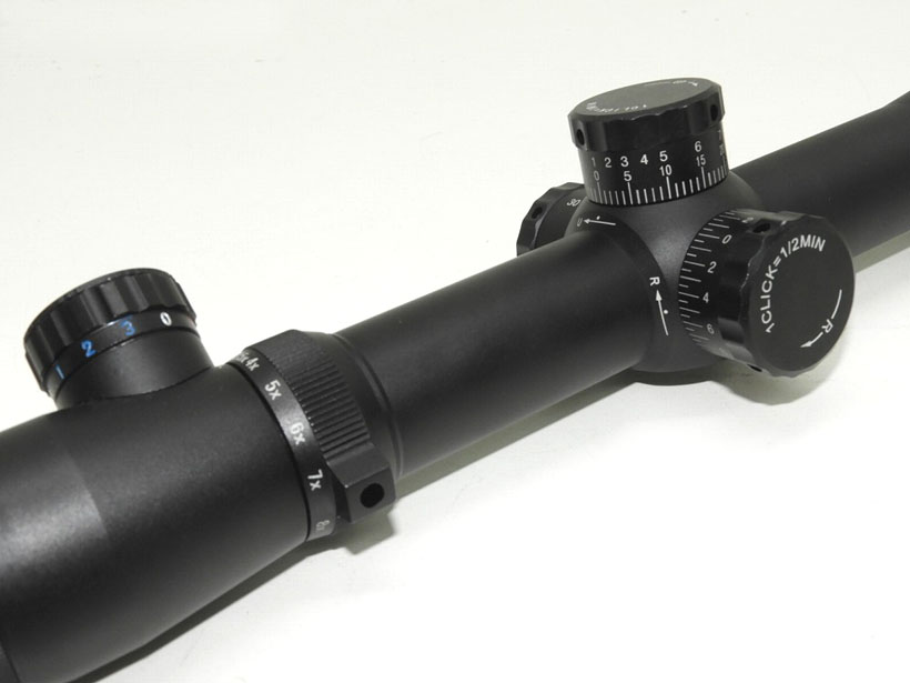 暗い場所でも視認性の高いレティクル発光タイプ。(レッド/グリーン/ブルー切替え可能)