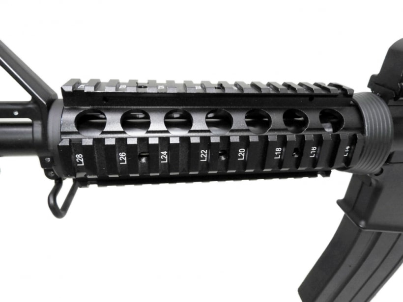 軽量で高耐久なナイロンファイバーフレームをベースにしたM4A1 RIS。扱いやすいバランスで、スブローバックガン入門に最適。