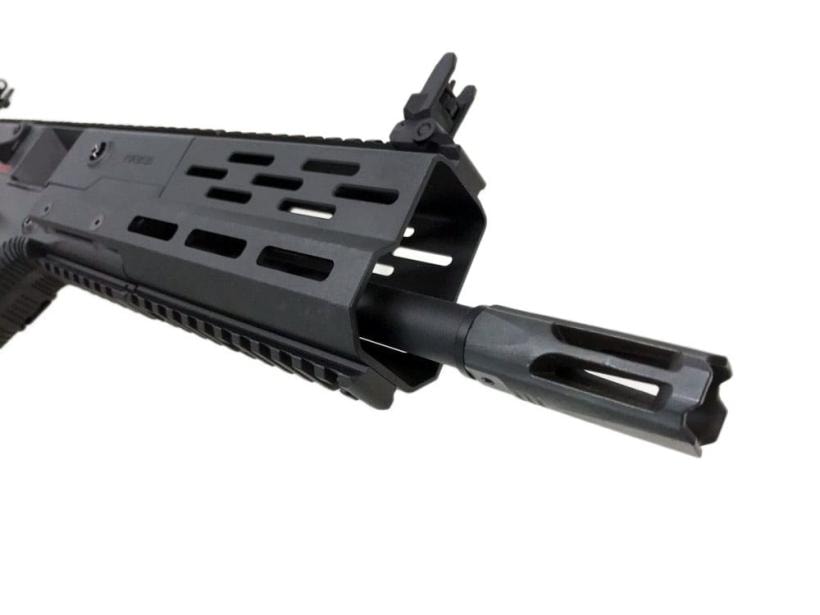 Vector Limited Editionは、AEG用に特別に設計されたM-lokハンドガードが特徴で、軽量で丈夫なアルミ合金製のハンドガードは、M-lokアクセサリーを取り付けるために、左右に3つのスロットがあります。
