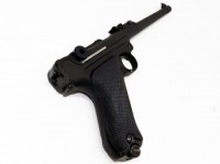 ワルサーP38についで有名な銃がこのルガーP08。点で二つに曲がって伸縮するトグルアクションが面白い銃である。ヘビーウェイト。
