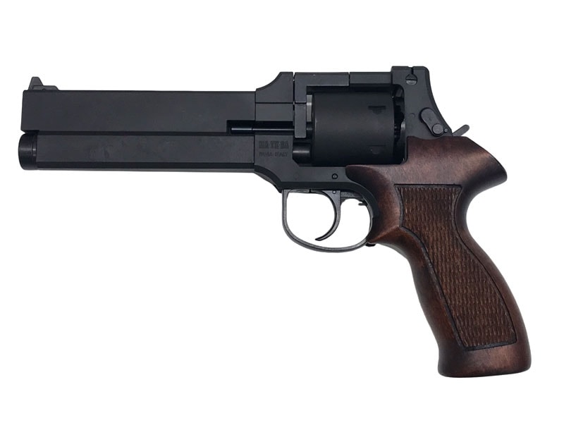 架空の銃のようだが、実際にイタリアのマテバ社で設計・製造・販売されていたモデルで通常のリボルバーと異なり、銃身が下部に設置されている事が大きな特徴。久しぶりの再販です!