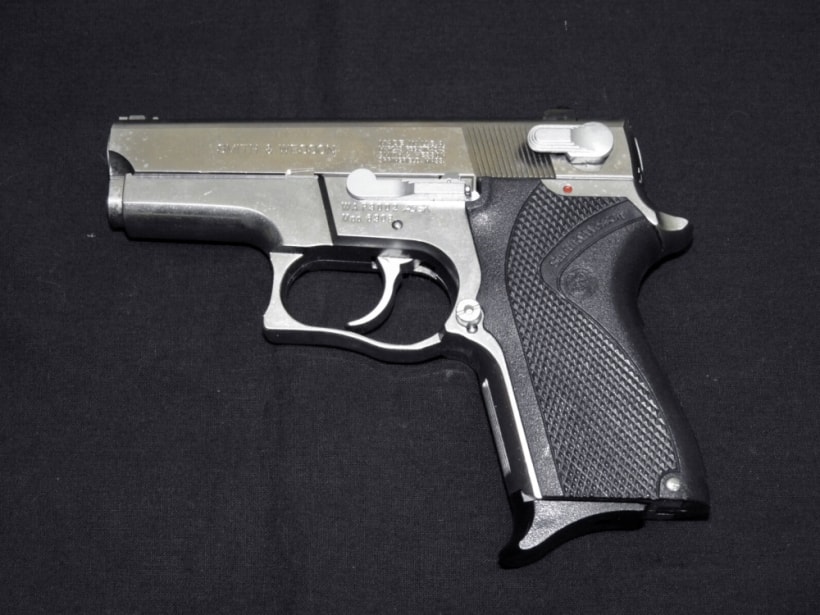 S&W社の開発したオートマチック型のハンドガンをベースに、パフォーマンスセンターがカスタムを加えたモデル。パワーロスが少なく安定した動作が特徴の固定スライド式で、外装は美しいステンレスフィニッシュ仕上げ。ナイロン製ホルスター付き。