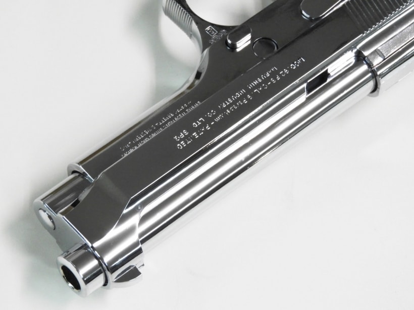 マルシン製ベレッタは商標権問題によって、同じモデルでも生産時期ごとに実銃刻印とメーカーオリジナル刻印のものが存在するが、こちらはWAから賦与されたライセンスによって再び実銃刻印となっていた時期のモデル。