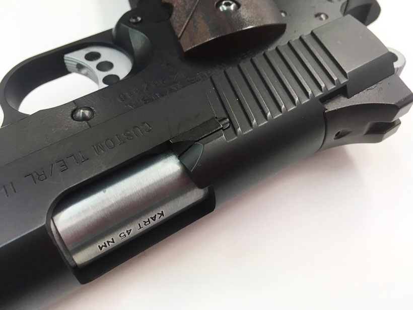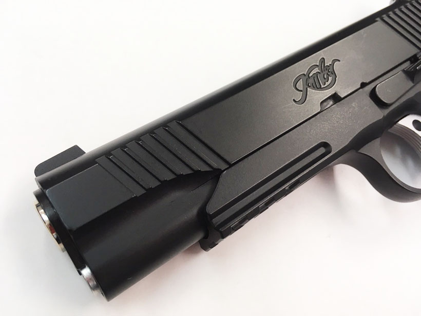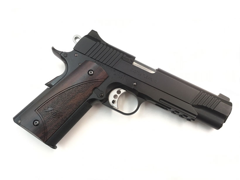 TLEはTacticai Law Enforcement (戦術法執行)の略。キンバー社の最新(2006年)レイルドフレームを再現。各部には実銃同様のカスタムパーツが 装備されている。中でもひときは目を引くのは、レール一体型のフレーム。