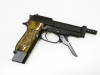 木目調HWグリップやスライド&フレームには実銃準拠の精密な刻印が復活し、もちろんセミ/フル/バースト射撃も楽しめる。