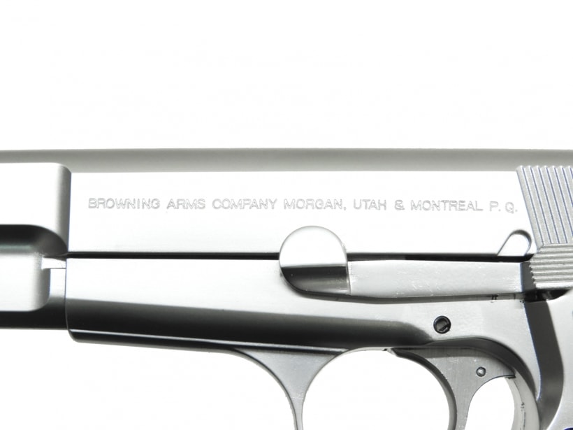 JACのブローニングハイパワー ステンレスシルバー。木製グリップカスタム品。