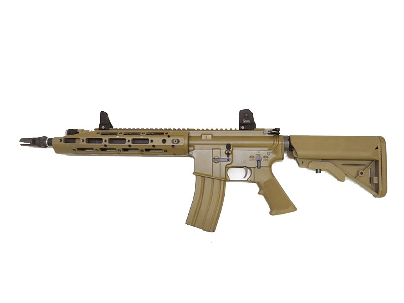 オープンボルトシステム搭載のガスブローバックシリーズ。レミントン社製 RAPTOR Adaptive Rail System搭載モデルをリアルに再現。タンカラー、刻印のない無刻印モデル。