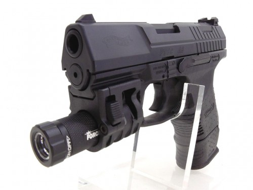 [マルゼン] ワルサーP99 コンパクト スペシャルフォース (中古) 製品詳細画像1 ワンタッチで点灯!電池式LEDライト&専用マウントリング。フルサイズマガジン用グリップエクステンションも装備。