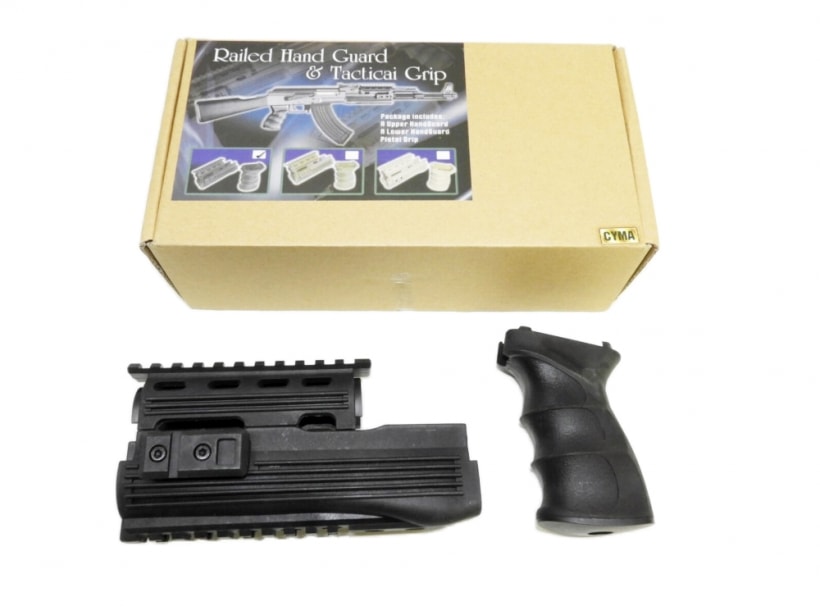 CYMA AKシリーズ電動ガン用の、レイルハンドガードとタクティカルグリップのセット商品。