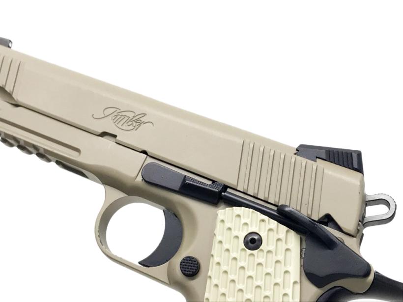 近年のタクティカルオートの定番カラー、"フラットダークアース"の焼付け塗装で仕上げられたボディが印象的な当モデル。