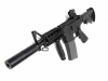 通常のM4と比べてショートバレルとなった以外はほぼ何も変わっていないのに、何故か全体にスケールダウンしたかのように見える不思議なサイジング。持ってみると前が短い分ウェイトが中心寄りになっており、単純な大きさ以上に取り回しが良く感じる。動作に関してはノーマルM4と変わらない強烈なリコイルが楽しめるが、ショートバレルでマズルが身体に近い分、発射音なども近くで聞こえるために迫力が増している感がある。