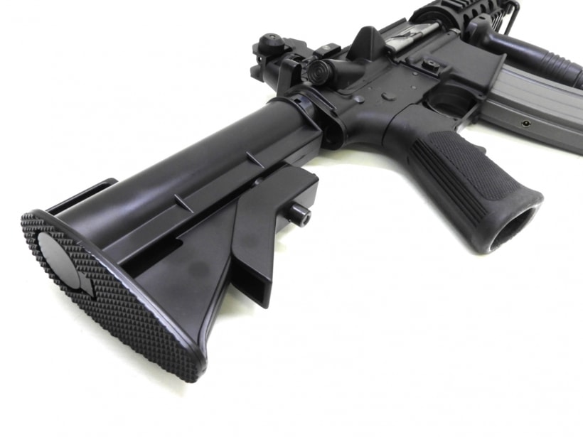 アッパー&ロア・レシーバーは、グラスファイバーが配合された強化樹脂で製作。金属と同等の高い剛性に、樹脂ならではの軽量で強靭な性質もあわせもつ、戦うためのM4A1には最適のレシーバーの一つといえる。ストックは、現用米軍装備のM4カービンで使用されている、6ポジション・エンハンスドタイプ。その名の通り、固定位置はきめ細かく6段階に設定されております。