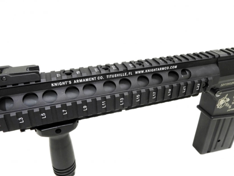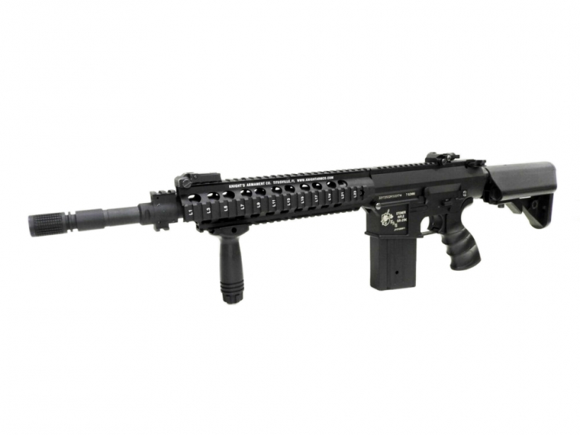 ユージン・スト-ナーとアメリカのナイツ・アーマメント社が開発した308口径セミオートマチック スナイパーライフルのカービン仕様。フォアグリップ付き。