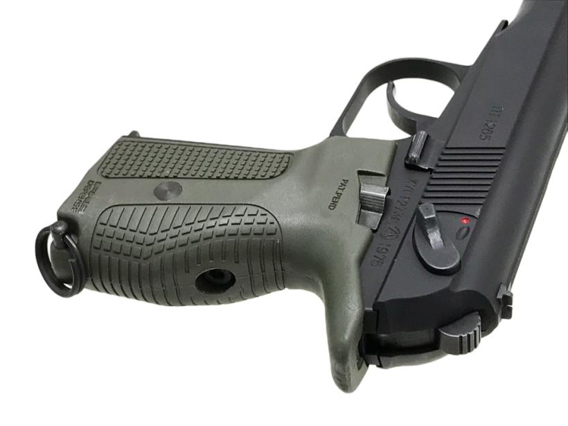 希少なイスラエル製の実物グリップを装着した「マカロフPMG」の中でも、このグリーンは特にレアリティが高いアイテム。タンカラーグリップよりも暗色で、いかにも軍用銃というムードに溢れた仕上がりです。またグリップフィット感や操作性の向上はもちろん、後期タイプへの形状変更などは、従来のPMGシリーズと同様です。