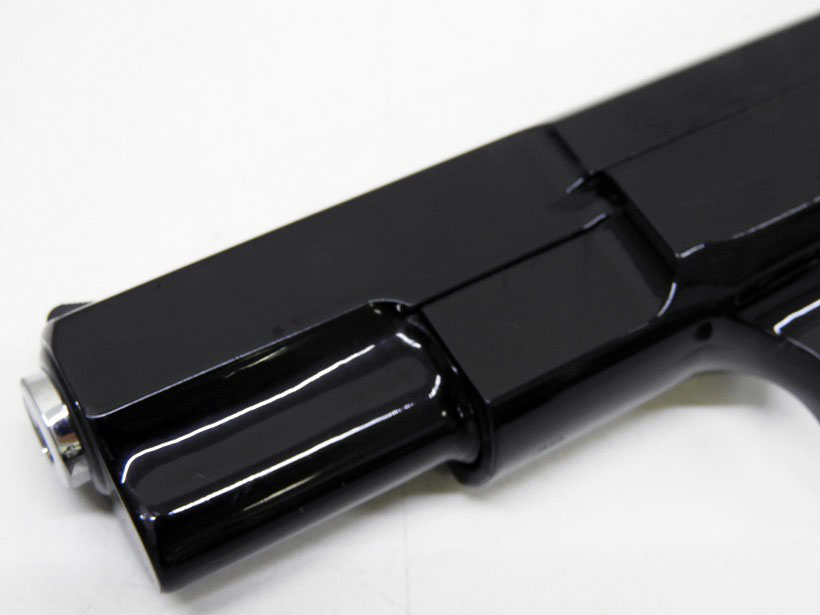 その名のとおり深いブルーの光沢がすばらしい。ABSのフレームでありながらこれほど光沢がさせるのかと関心してしまう。コック&ロックのダブルアクションハンマーやファイアリングピン後端のルックスなど、細部もリアリティにこだわって造りこまれている。