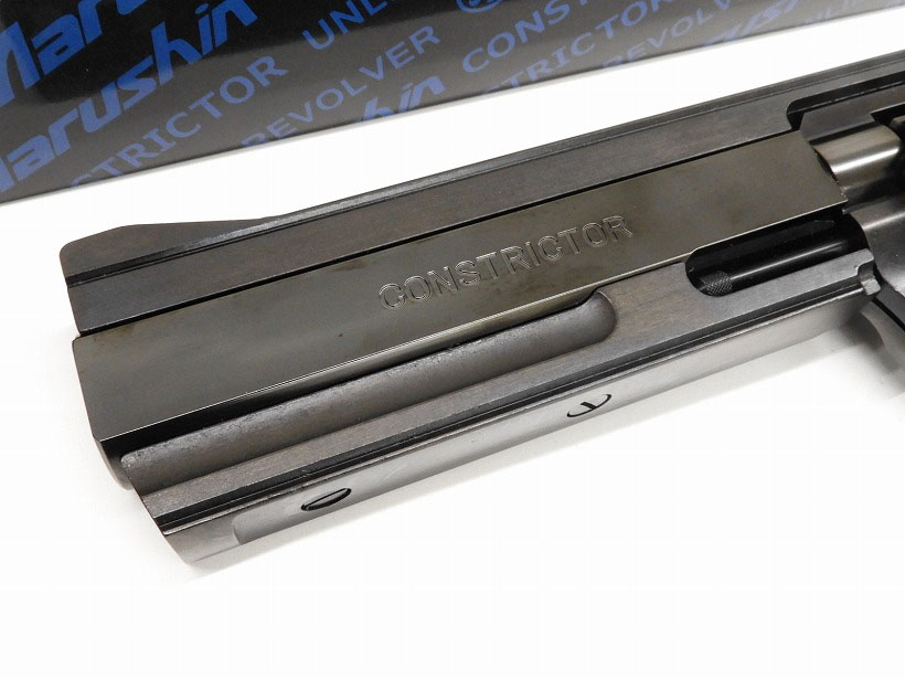 コルト・アナコンダをベースにしたマルシン工業オリジナルデザインカスタムリボルバー、「コンストリクター」。 新仕様のリアルXカートリッジ付属にグレードアップした6mmBB弾仕様、Xカートリッジモデル。Wディープブラックモデル。コルト正式ライセンスモデル。