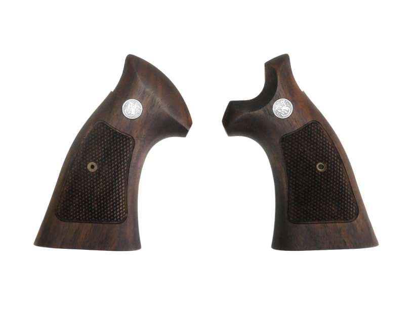 キャロムショット製 S&W・Kフレームウォールナットチェッカー 木製グリップ。M10、M19など用。