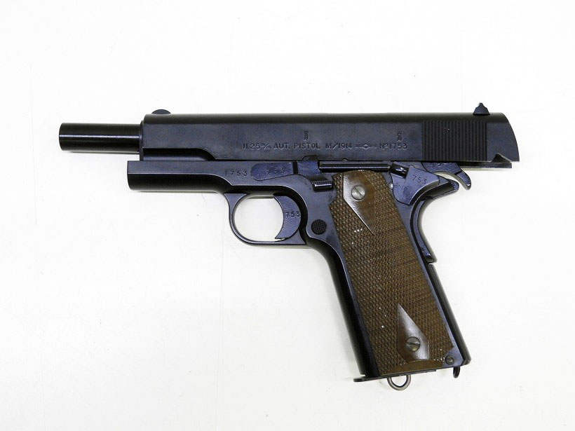 ノルウェー産.45「コングスベルグ 11.25mmAUT.PISTOL M1914」がロイヤルブルー仕様で登場。 大型スライドストップや、各部の刻印類、マガジン底部のランヤードリングなど再現!!