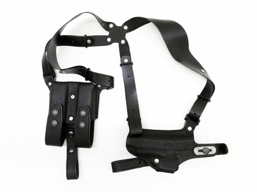 [イーストA] No.282 ガバメント用 Wマグポーチ付きホリゾンタル サムブレイク シルエットホルスター ブラック (中古) 製品詳細画像4
